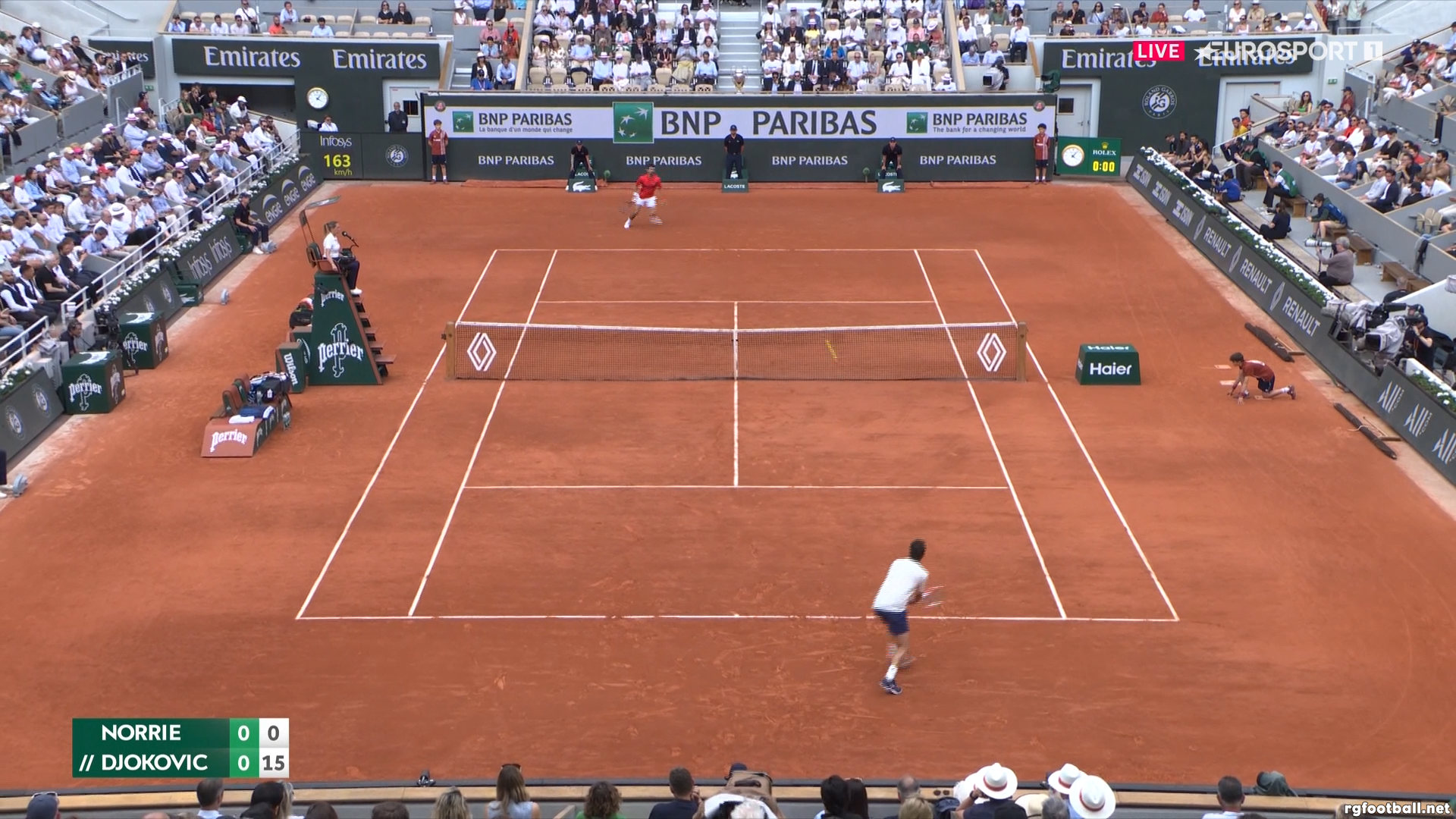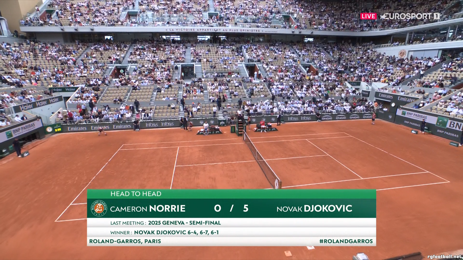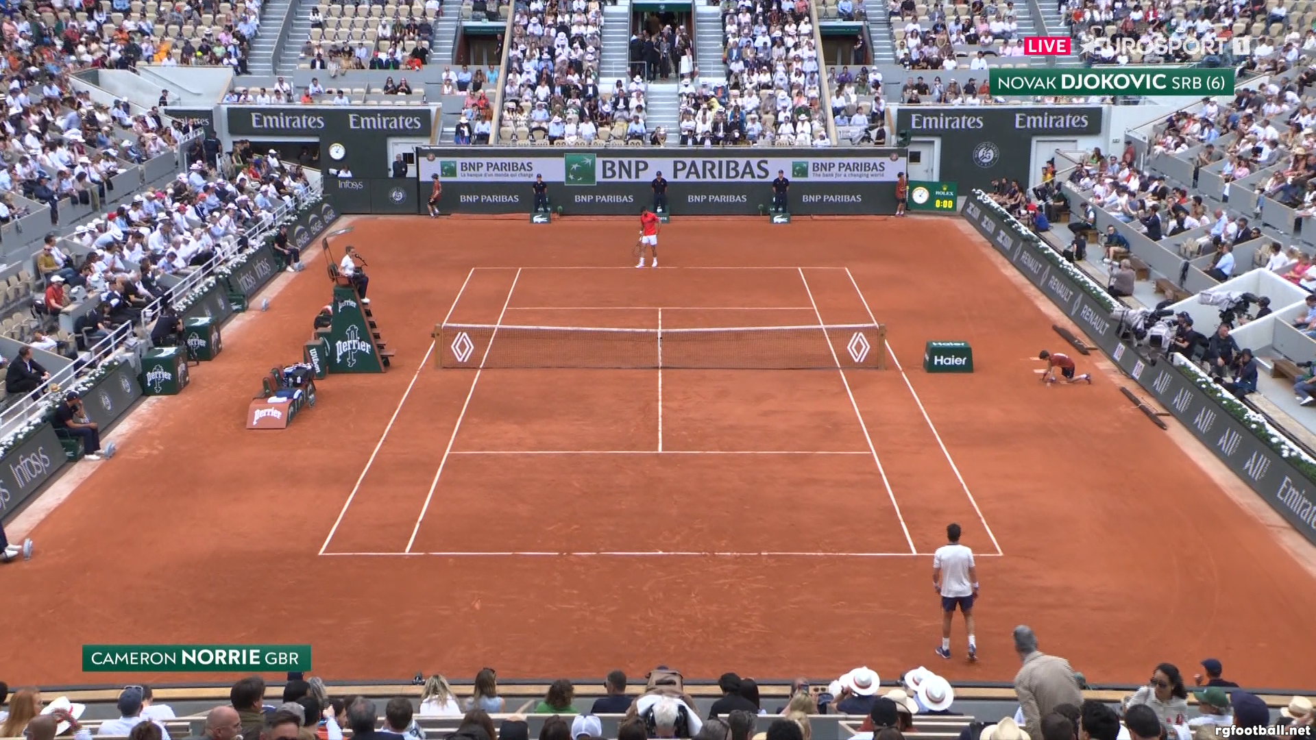 Roland Garros 2025 » Men's Singles » 04. Round » Cameron Norrie (GBR) vs Novak Djokovic (SRB) » К. Норри (Великобрита